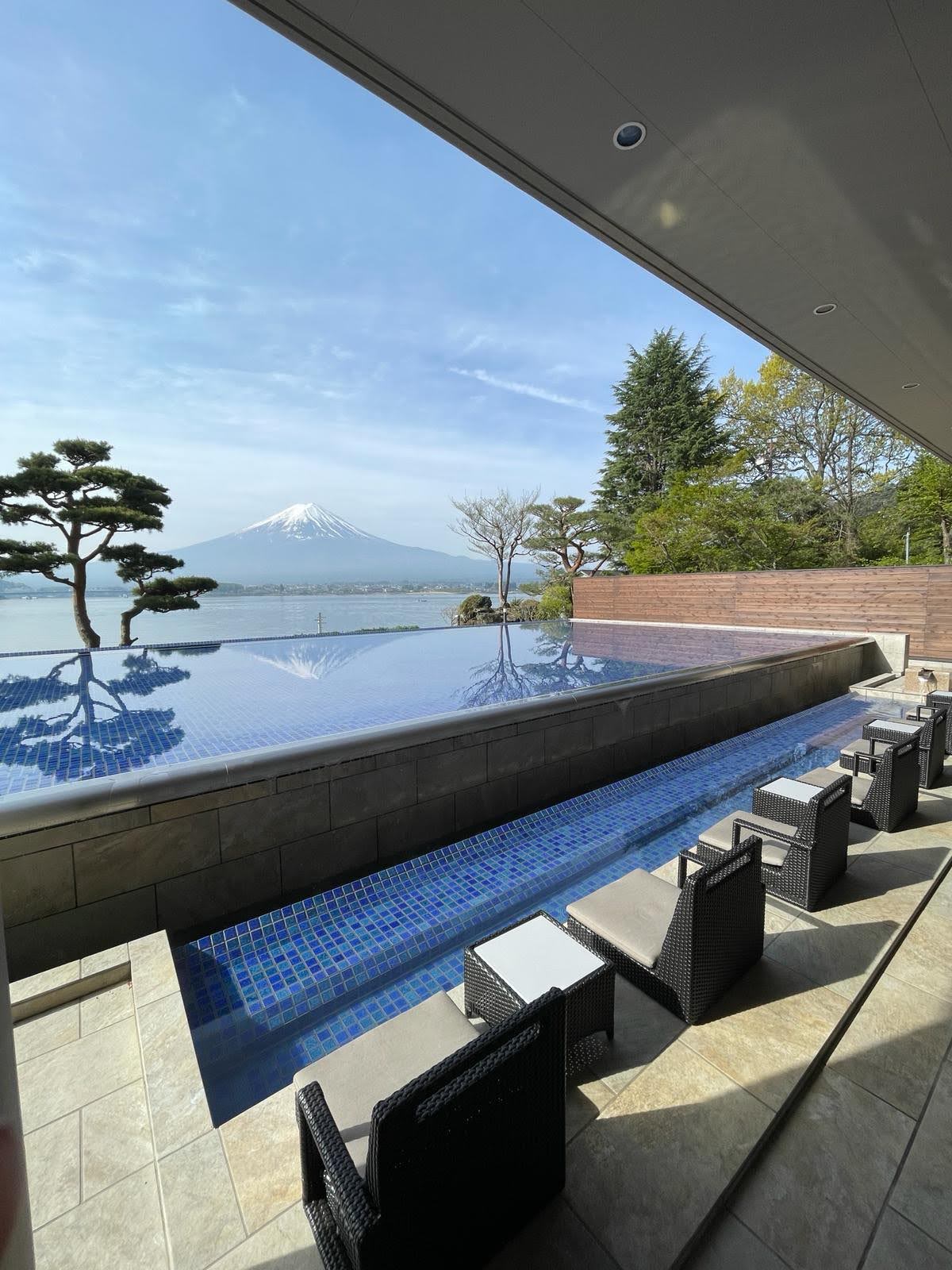 一早起來, 在秀峰閣湖月的房間內欣賞無遮擋的逆富士